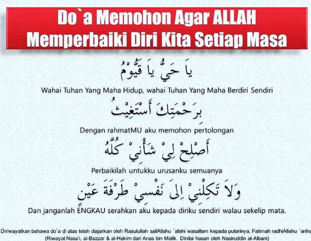 ... "Ya Tuhan kami, limpahkanlah kesabaran kepada kami dan wafatkanlah kami dalam keadaan berserah diri (kepada-Mu)". (Al A'raf 7:126)